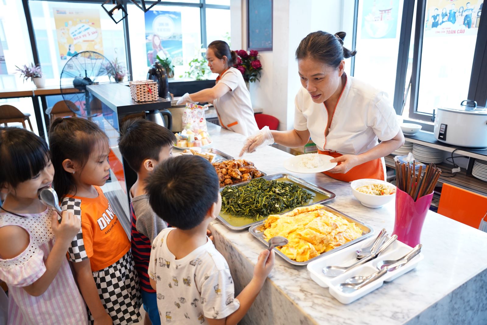 Học viên thưởng thức bữa ăn dinh dưỡng, ngon miệng giữa giờ học