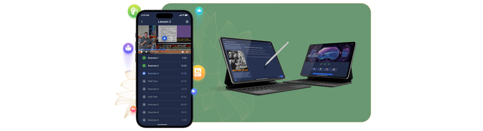 Song song, ứng dụng tích hợp các bài thi đánh giá năng lực như các lớp học tại chỗ. Khi hoàn thành bài thi, học viên có thể tự đánh giá năng lực bản thân ở mức nào theo các tiêu chuẩn đào tạo ngoại ngữ phổ biến hiện nay như IELTS hay CEFR.