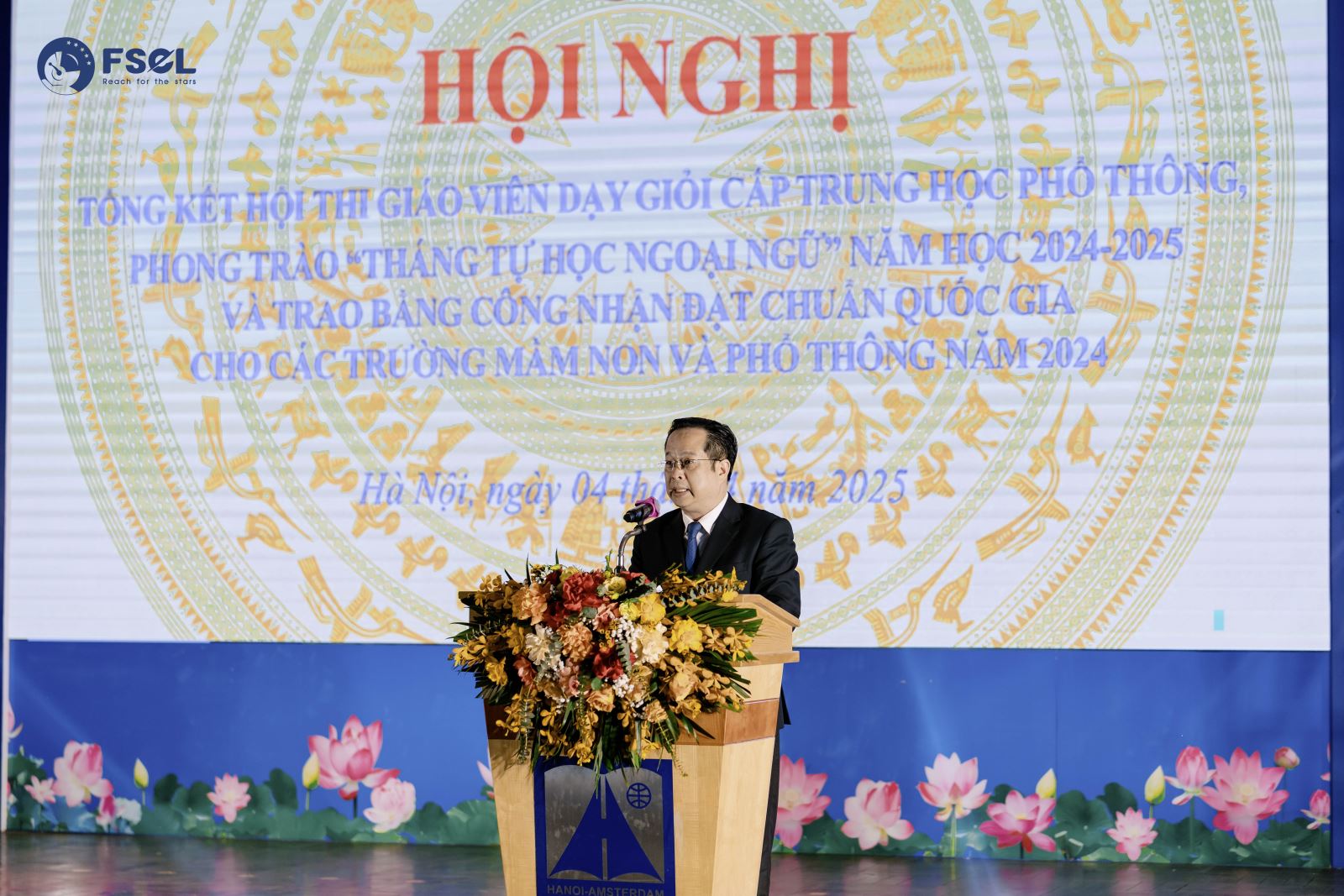 Phát biểu tại Hội nghị, ông Trần Thế Cương, Giám đốc Sở GD&ĐT Hà Nội, đã có những chia sẻ tự hào về kết quả của "Tháng Tự học Ngoại ngữ". Sự kiện thu hút gần 630.000 tài khoản đăng ký, trong đó, gần 481.000 học sinh hoàn thành bài kiểm tra năng lực tiếng Anh, chiếm khoảng 80% tổng số học sinh tham gia. Kết quả này đã phản ánh sự thành công và là động lực để ngành giáo dục Thủ đô tiếp tục đổi mới, sáng tạo. Ông cũng bày tỏ mong muốn khuyến khích các em học sinh tiếp tục duy trì tinh thần tự học, coi việc trau dồi ngoại ngữ là hành trình dài hạn, mở rộng cơ hội phát triển bản thân trong tương lai.